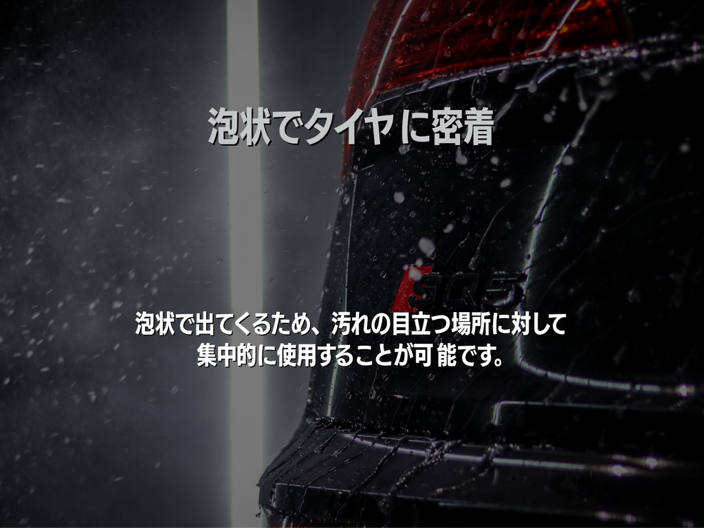 アルカリ性タイヤクリーナー、泡タイプのスプレーノズル付きで泡立ちも良く使いやすい
