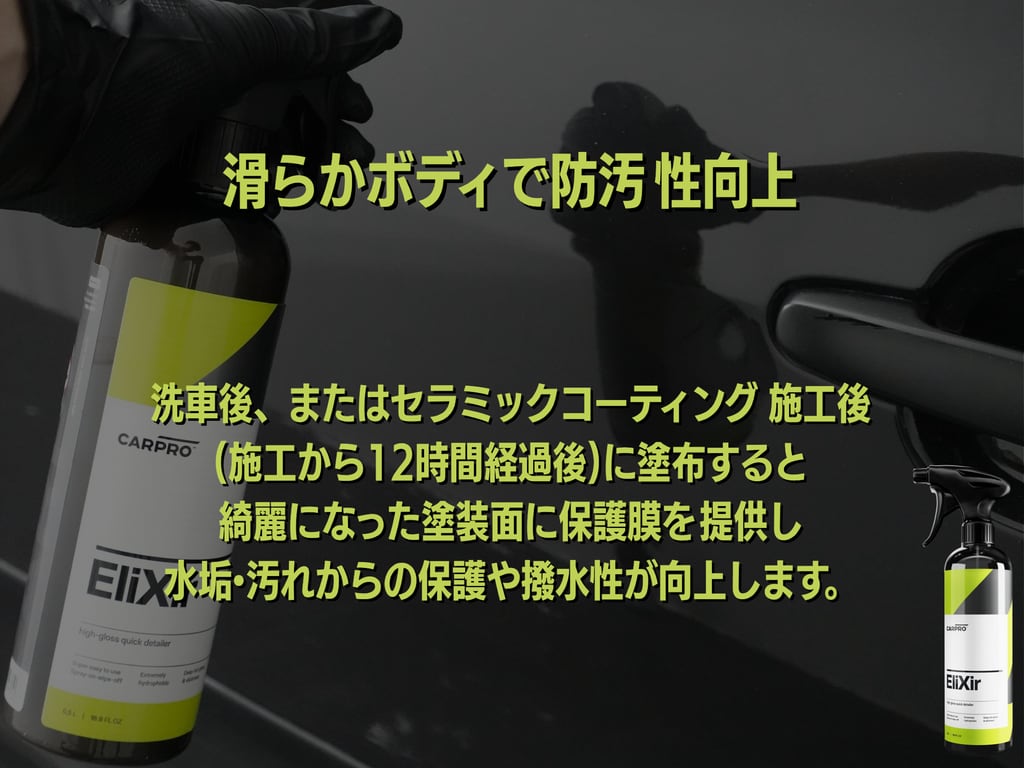 この製品は、すでにリロードでコーティングされた車両に対しても最適で、リロードが提供する素晴らしい光沢と疎水性を維持するのに役立ちます。エリクサーは約1回塗布すれば理想的なプロテクションになります。